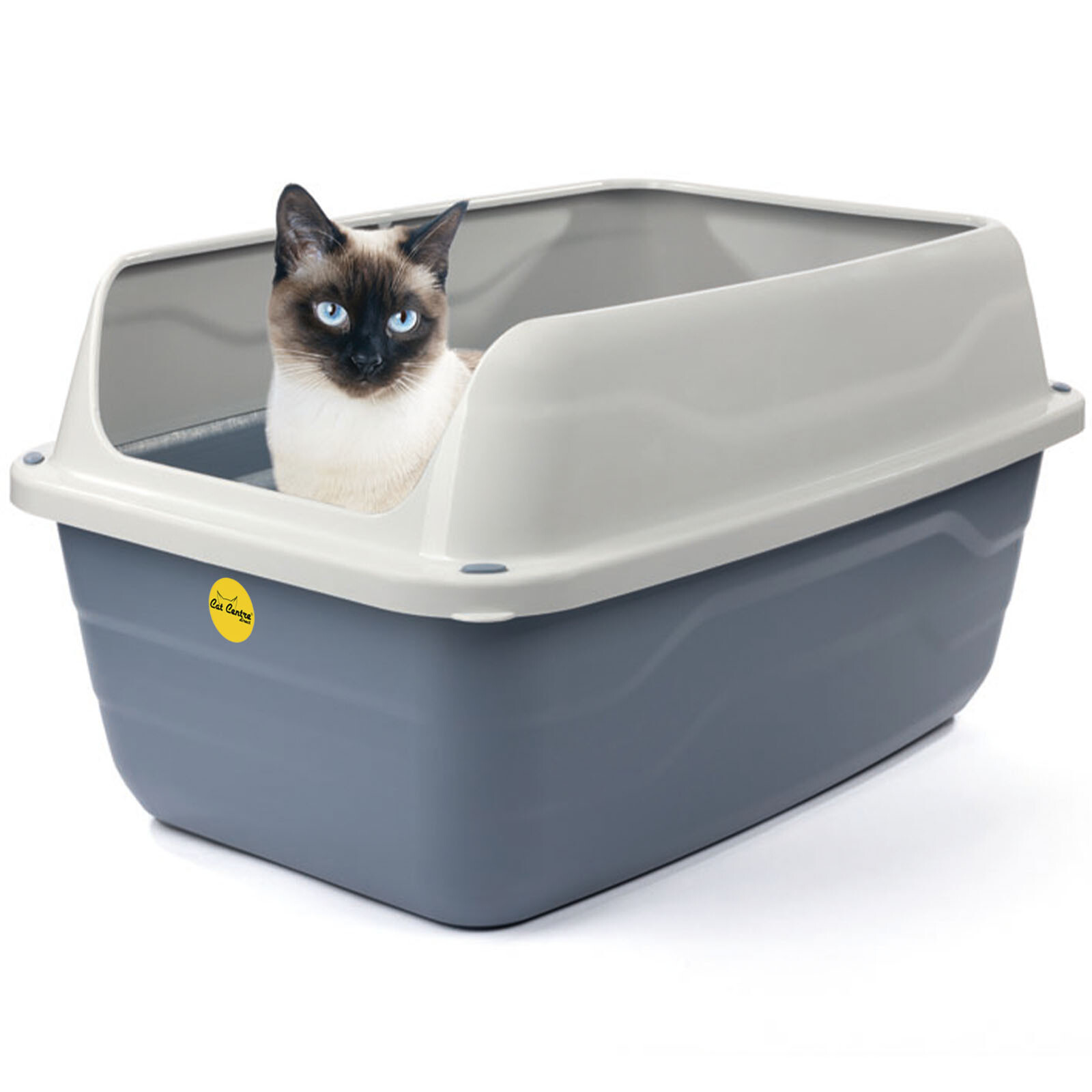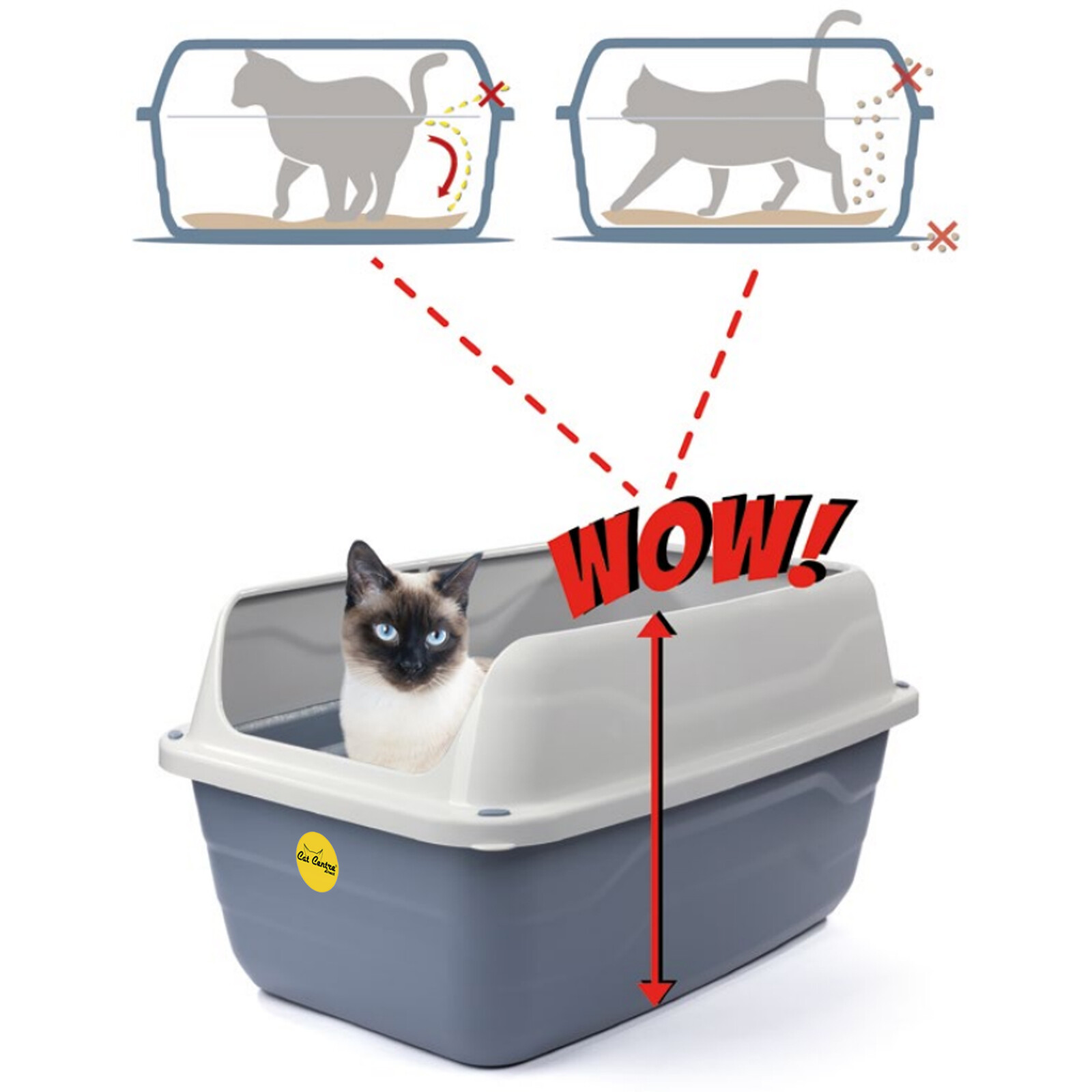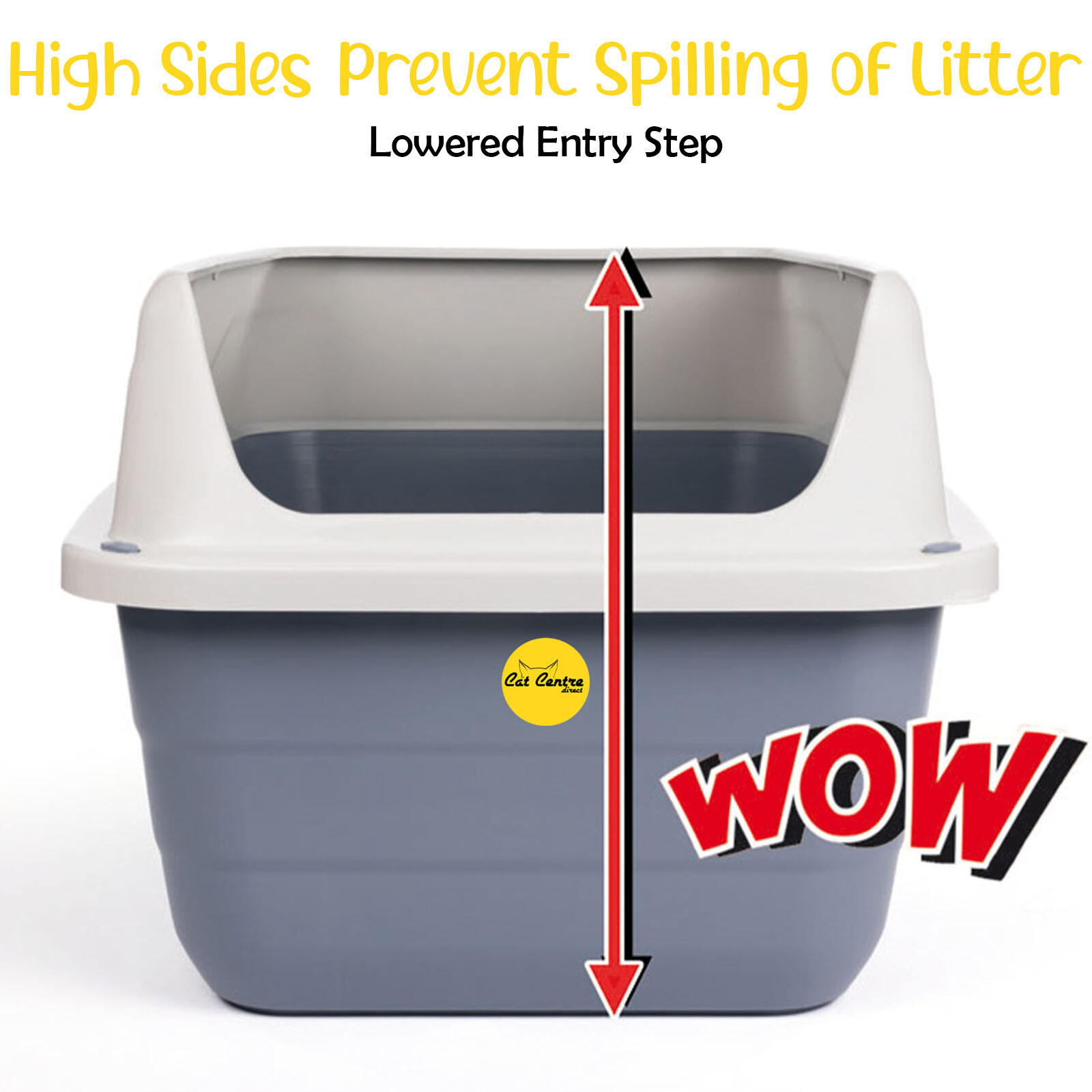 Jumbo Open Cat Litter Tray High Sided Rim Pan Deep Grey Toilet Box CatCentre®